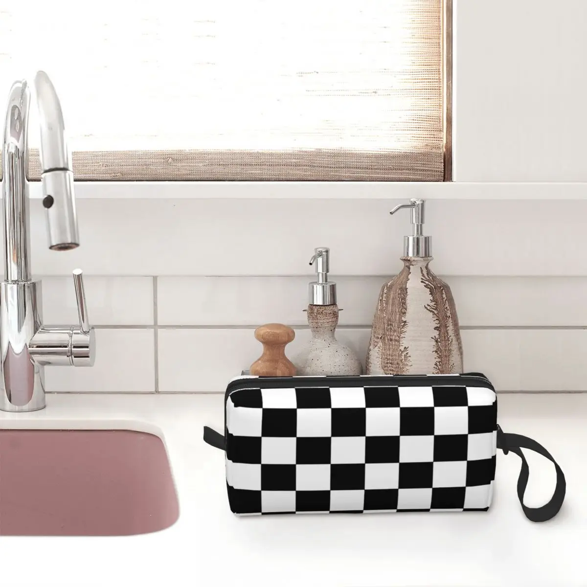Женская косметичка для улицы Ska Music, черно-белая сумка для косметики, стильный органайзер для косметики