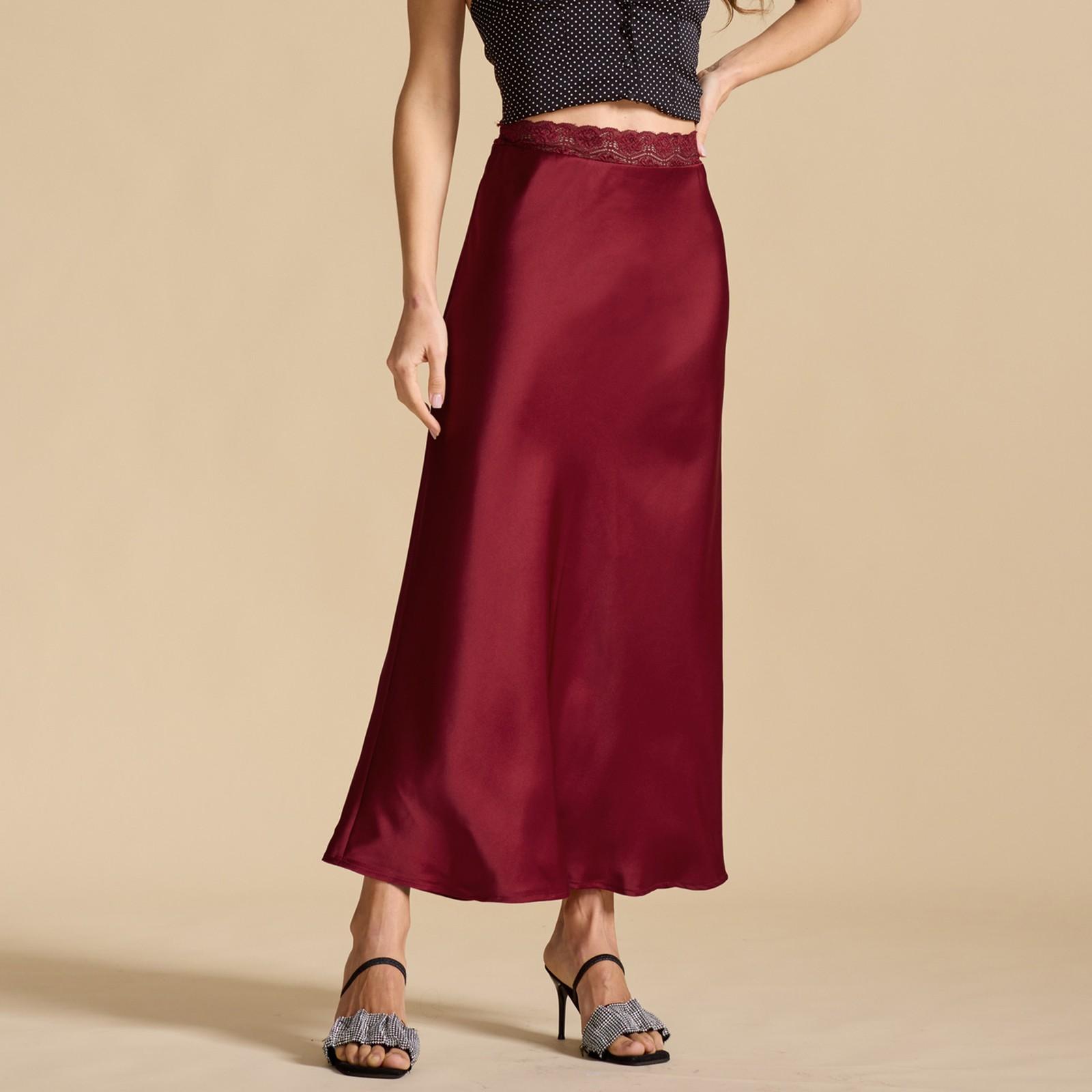 Женская кружевная атласная юбка с поясом, модная сексуальная эластичная длинная юбка на бедрах S винный