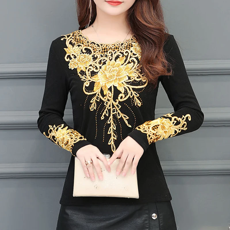 Женская кружевная блузка, однотонная, с вышивкой, на пуговицах, весна-осень, SP754