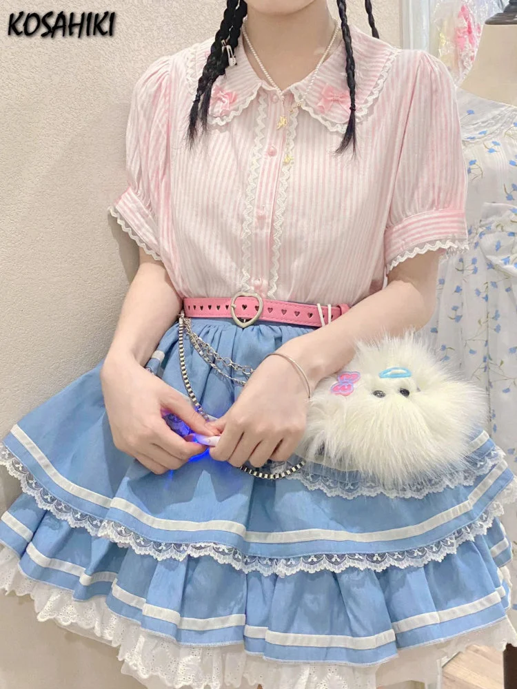 Женская кружевная блузка с воротником «Питер Пэн», в японском стиле