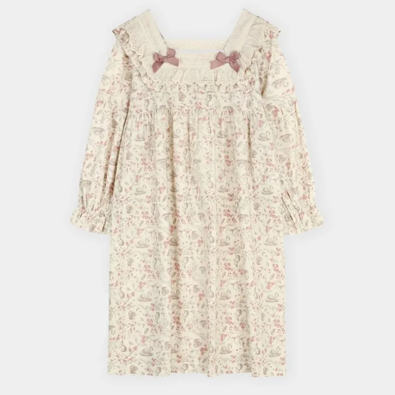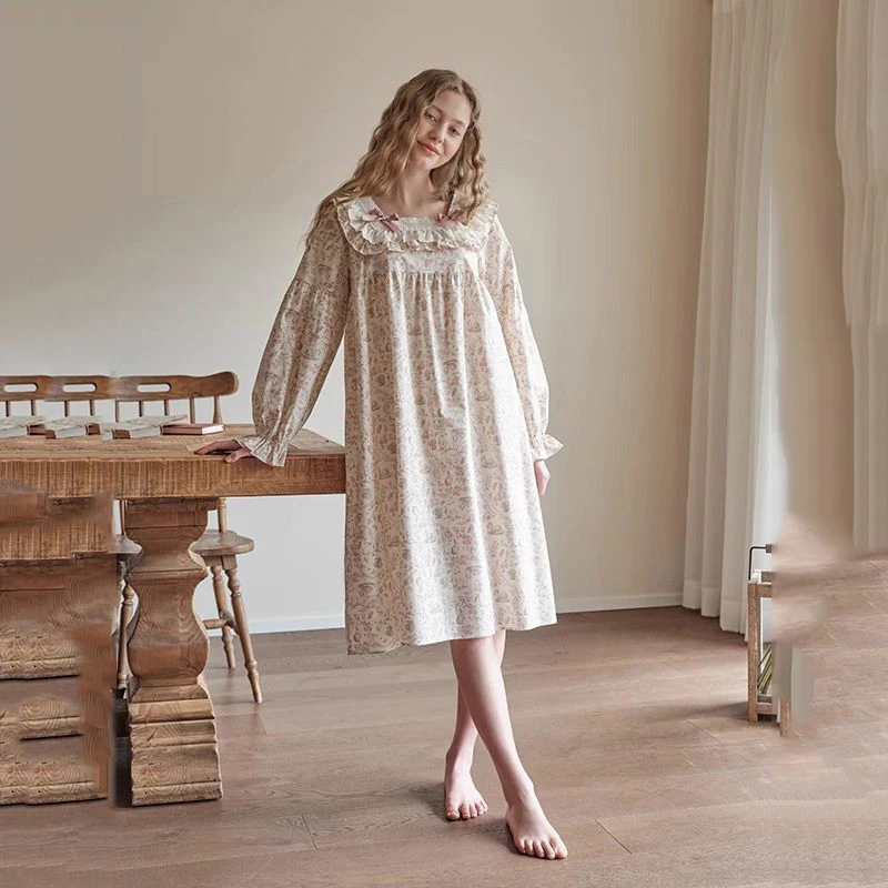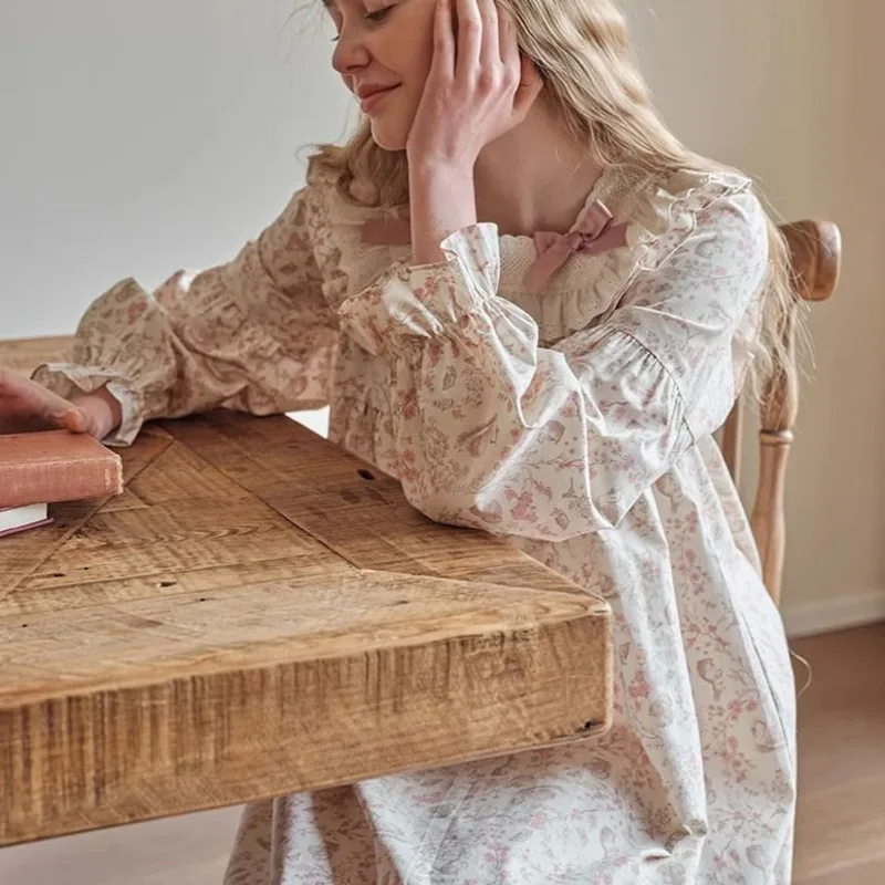 Женская кружевная ночная рубашка с длинным рукавом и цветочным принтом