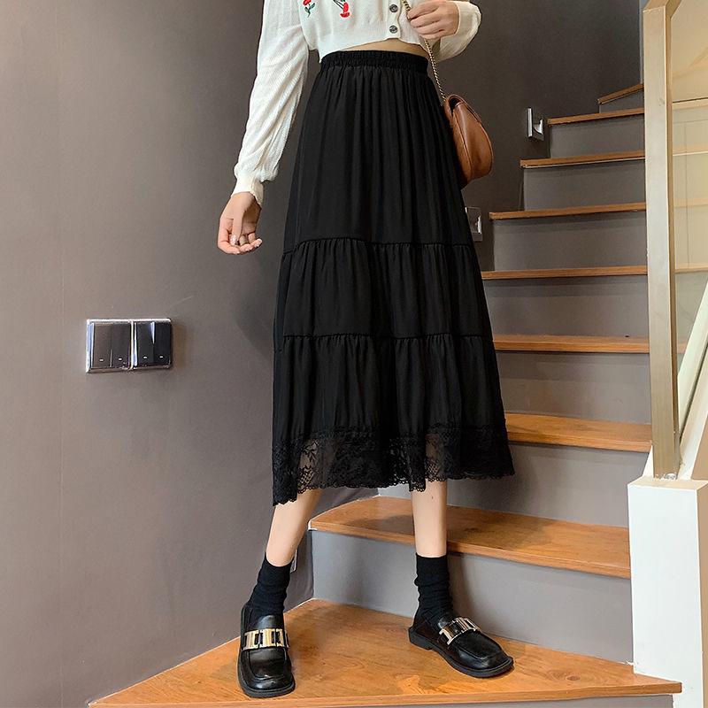 Женская кружевная юбка больших размеров, летняя, с оборками, эластичная талией, для отдыха на песчаном пляже, повседневная, до середины икры, юбка А-силуэта S чёрный