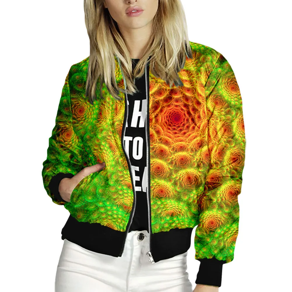 Женская куртка-бомбер на молнии, с длинным рукавом и 3D принтом