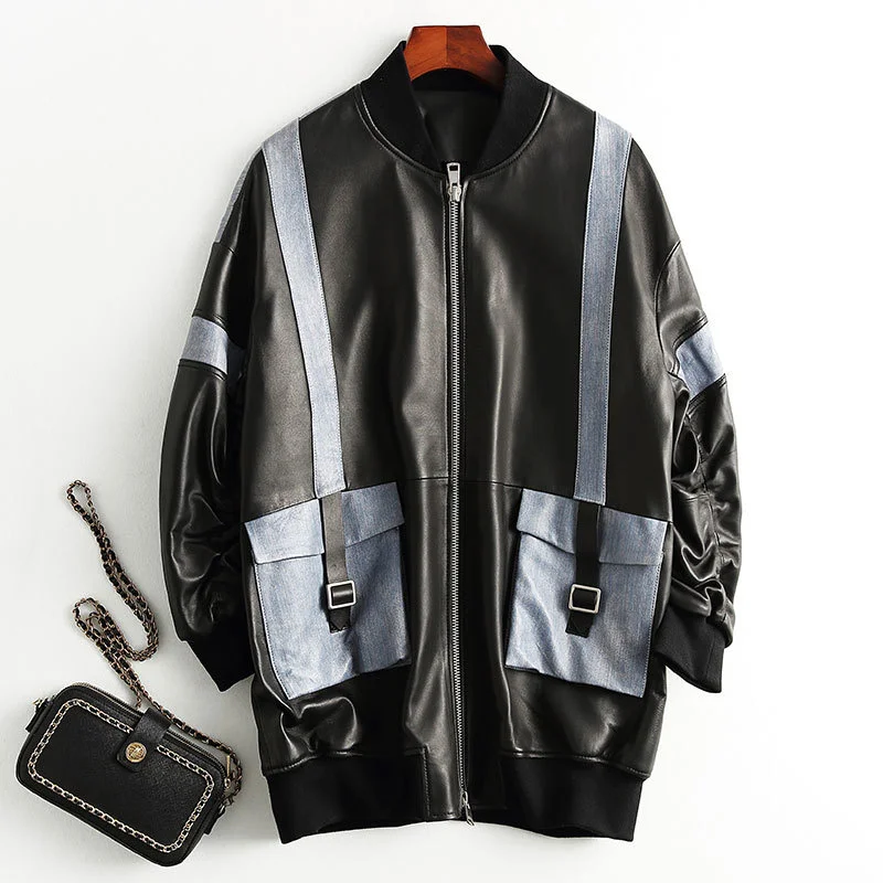 Женская куртка из натуральной овечьей кожи, длинная винтажная куртка в уличном стиле, весна-осень 100%