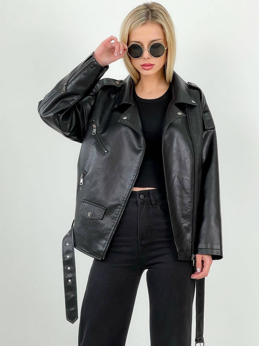 Женская куртка из эко кожи необычного кроя со спущенной линией плеча идеальный вариант для теплых весенних прогулок. Курточка идет в стиле оверсайз, что сегодня является невероятно популярным, ведь одаривает женщин возможностью быть свободными в своих предпочтениях. Если нравится носить менее свободно выбирайте размером меньше ориентируясь на замеры в описании.