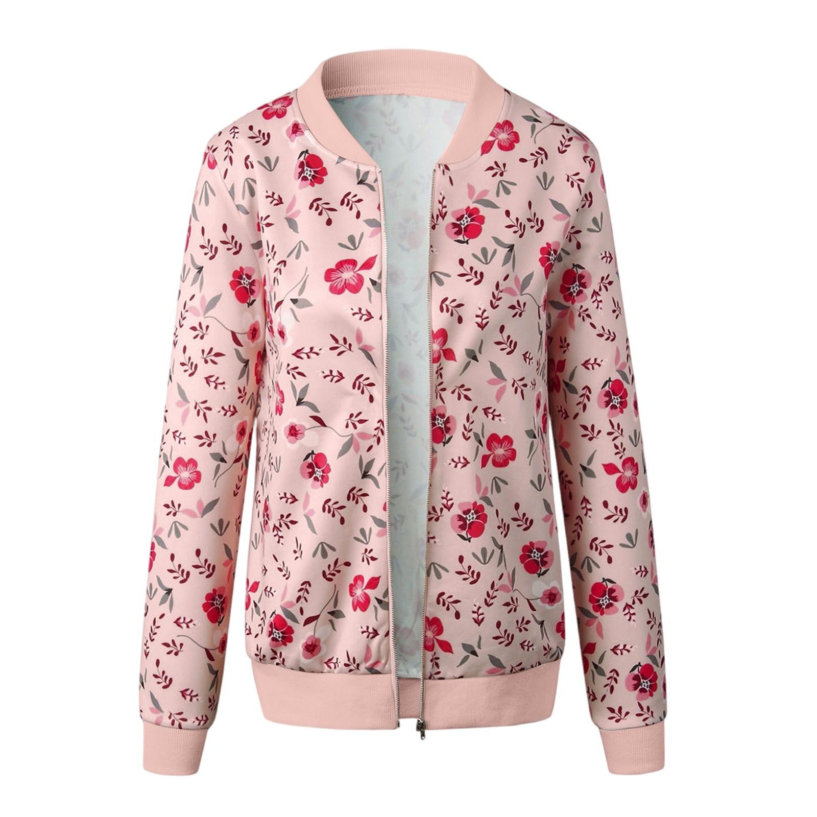Женская куртка на молнии с цветочным принтом в стиле ретро, повседневные топы, пальто и верхняя одежда L розовый