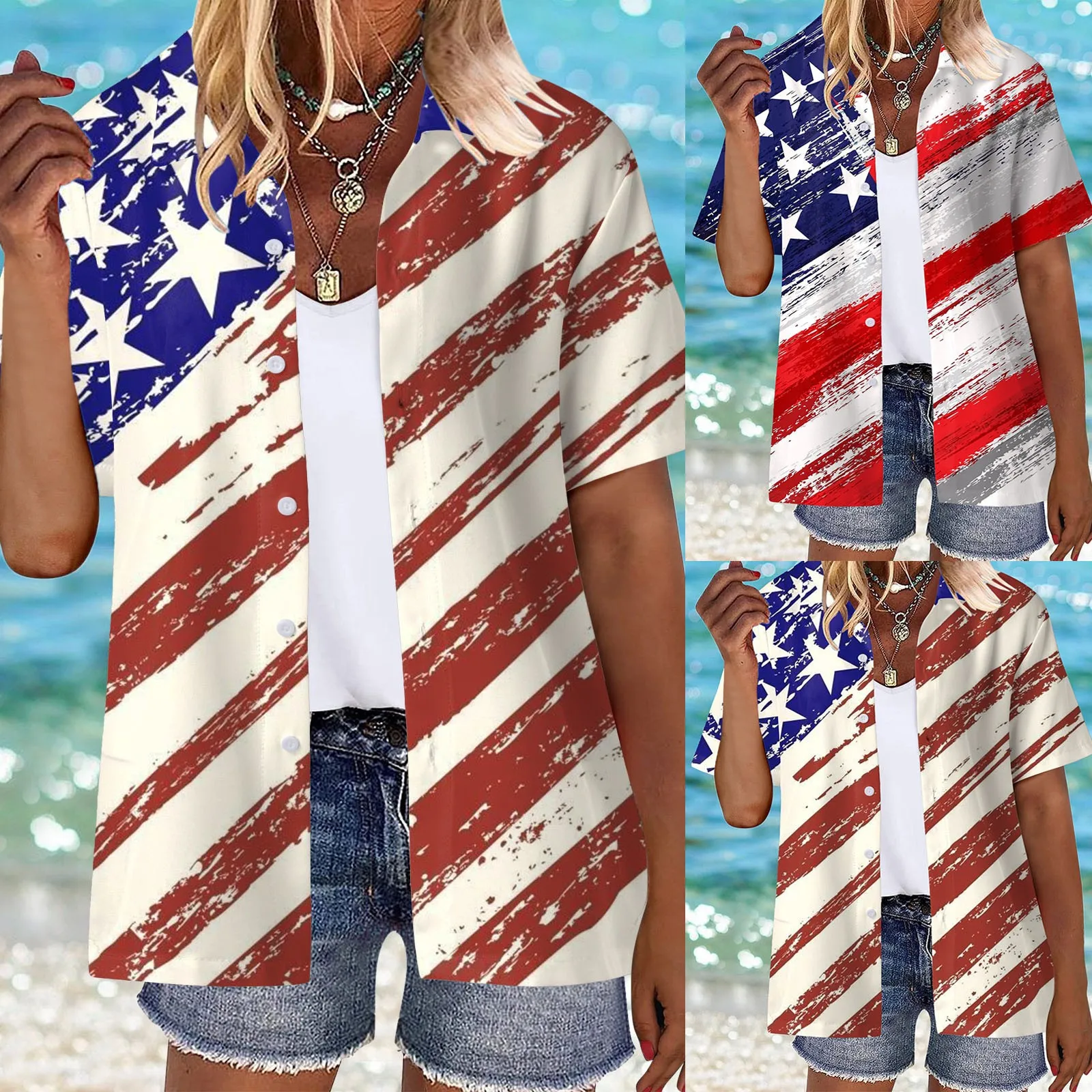 Женская летняя Классическая рубашка с цветочным принтом и коротким рукавом