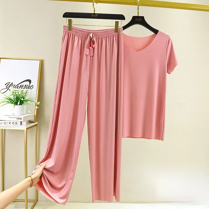 Женская летняя Пижамная футболка с широкими штанинами и коротким рукавом 2022
