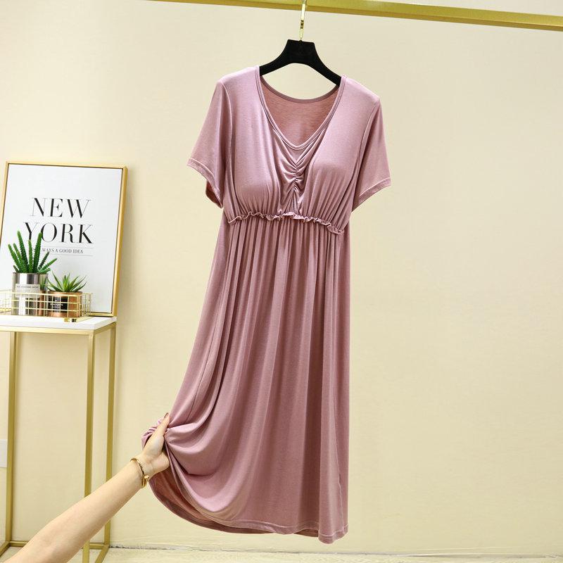 Женская летняя модальная свободная ночная рубашка с V-образным вырезом - короткий рукав, без бюстгальтера, пижама большого размера Plus Size