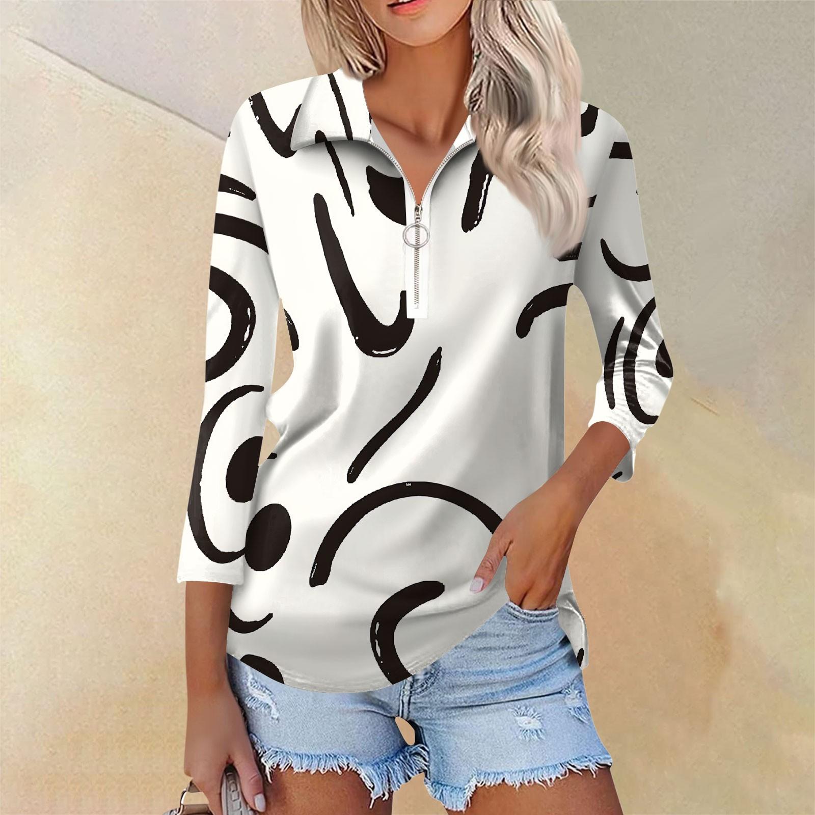 Женская летняя модная повседневная рубашка с v-образным вырезом и семиточечным рукавом с принтом, топ XL белый