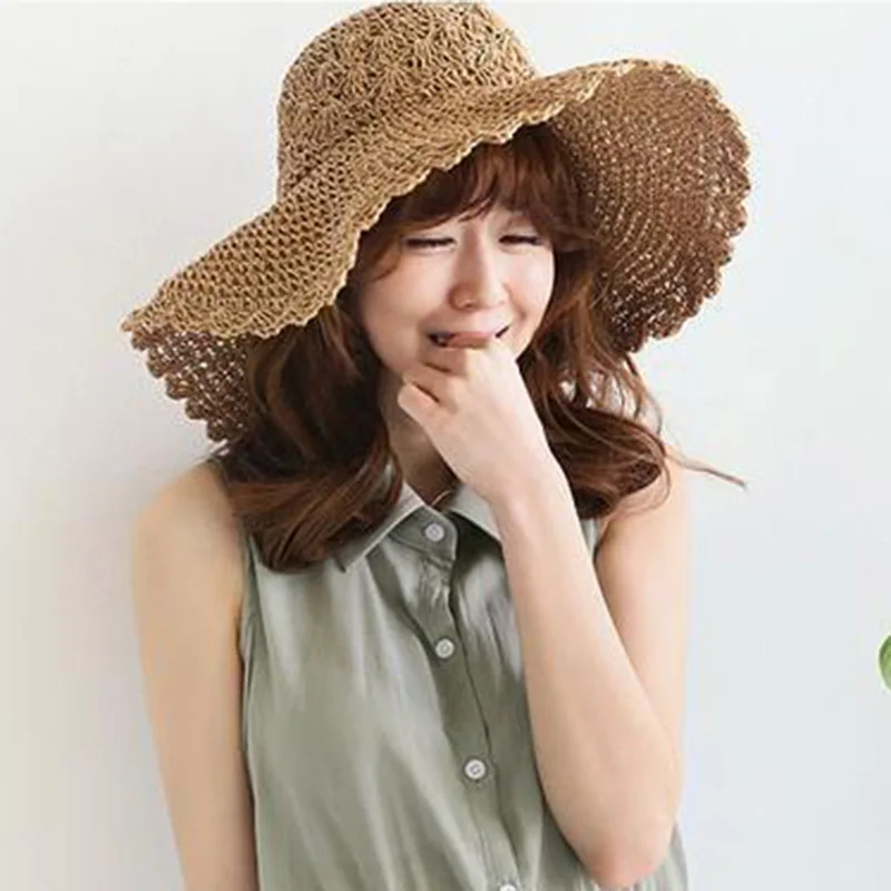 Женская летняя модная простая соломенная шляпа ручной работы с полыми широкими полями в Корейском стиле, Повседневная пляжная шляпа