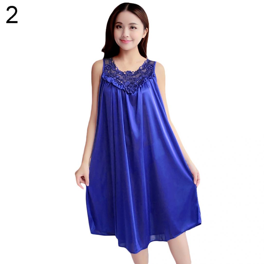 Ночная рубашка без рукавов свободного кроя с кружевом ярких оттенков темно-синий