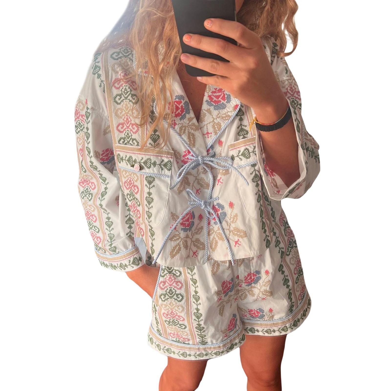 Женская летняя муслиновая блузка из двух предметов, рубашка и шорты, комплект из двух предметов, комплект пляжной одежды, женский комплект из двух предметов XL белый
