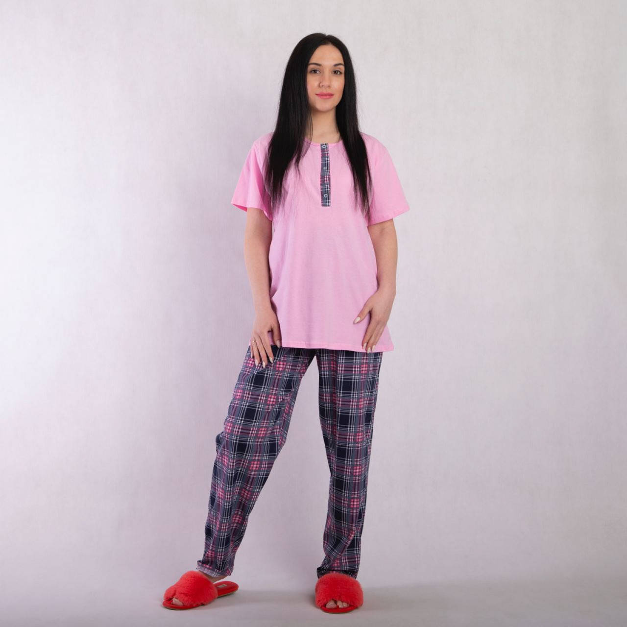 Женская летняя пижама батал Клетка (1961)