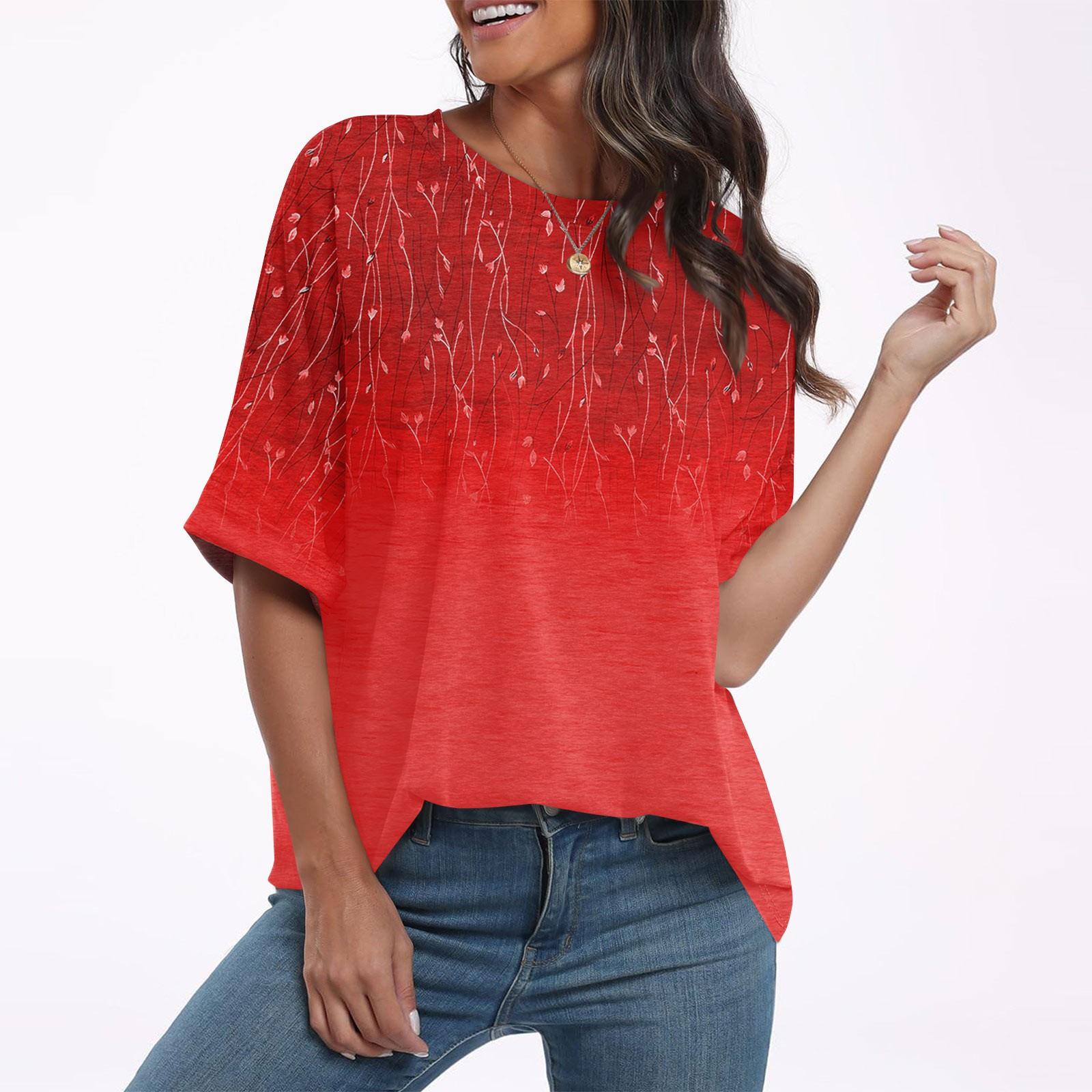Женская летняя повседневная футболка большого размера с круглым вырезом и принтом, с заниженными плечами, с рукавом четверть, топ M красный