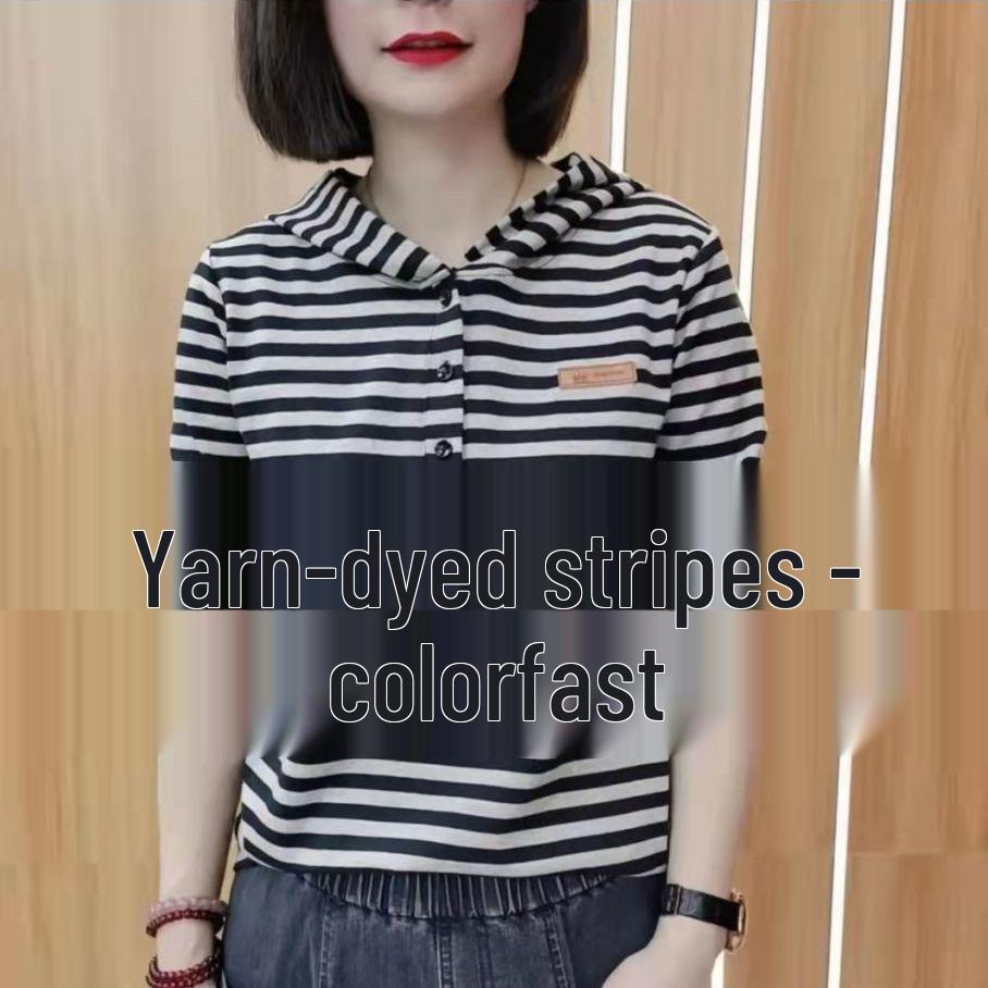 Женская летняя полосатая футболка с лацканами - Стильная, стройнящая накидка с коротким рукавом 3XL чёрный