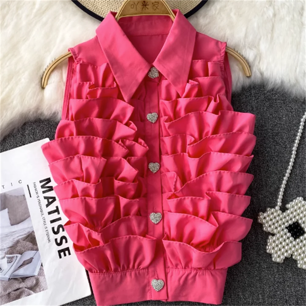 Женская летняя рубашка без рукавов с агарическим краем, однобортная, Повседневная Блузка