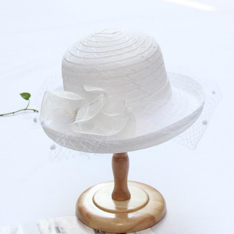 Женская летняя уличная козырек и дышащая шляпа от солнца с плоским верхом, широкополая шляпа от солнца, элегантная винтажная модная кружевная сетчатая шляпа с подшивкой adjustable