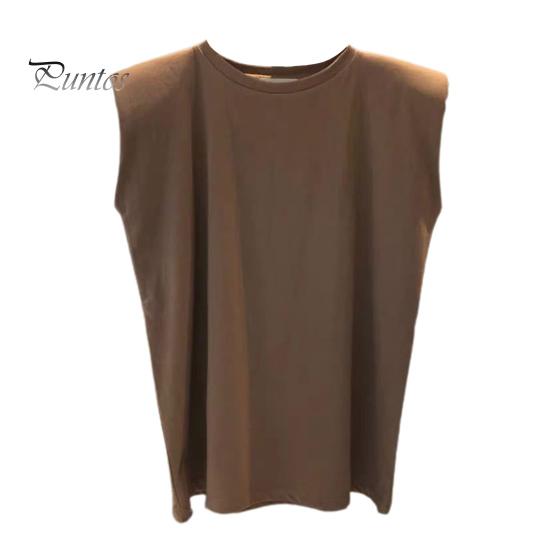 Женская летняя футболка без рукавов, свободная однотонная пуловер с круглым вырезом, простой стиль, домашняя одежда для путешествий, повседневная майка, женская блузка XL кофейный