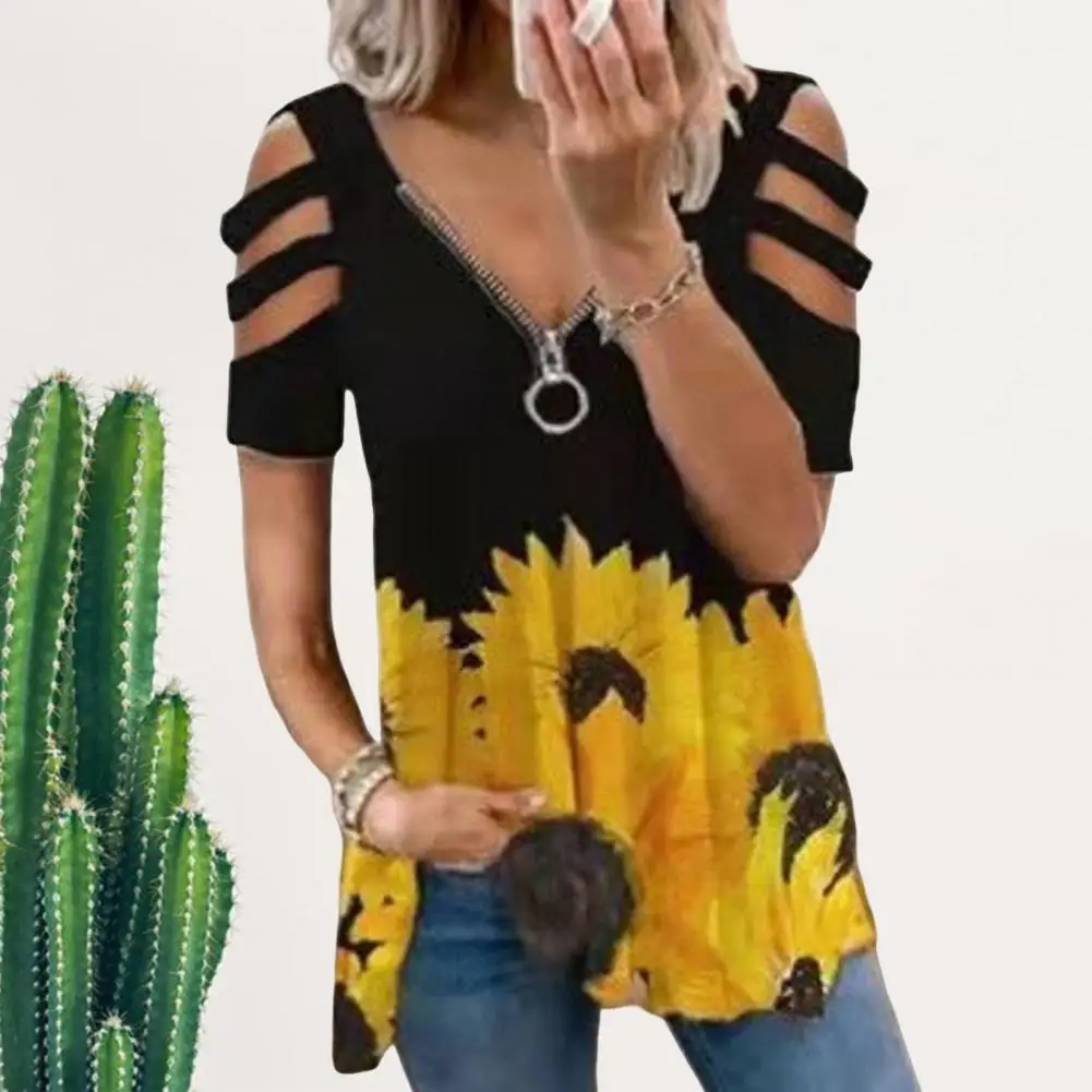 Женская летняя футболка на молнии с V-образным вырезом и открытыми плечами