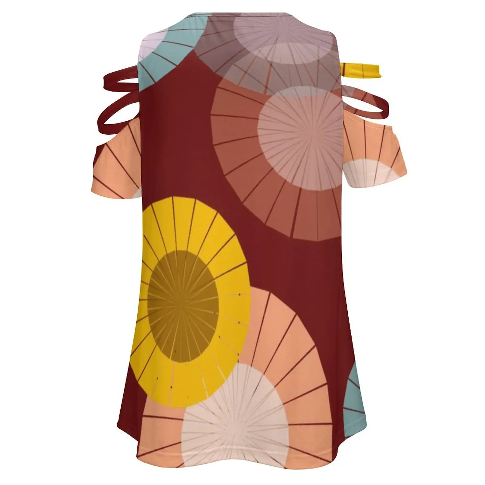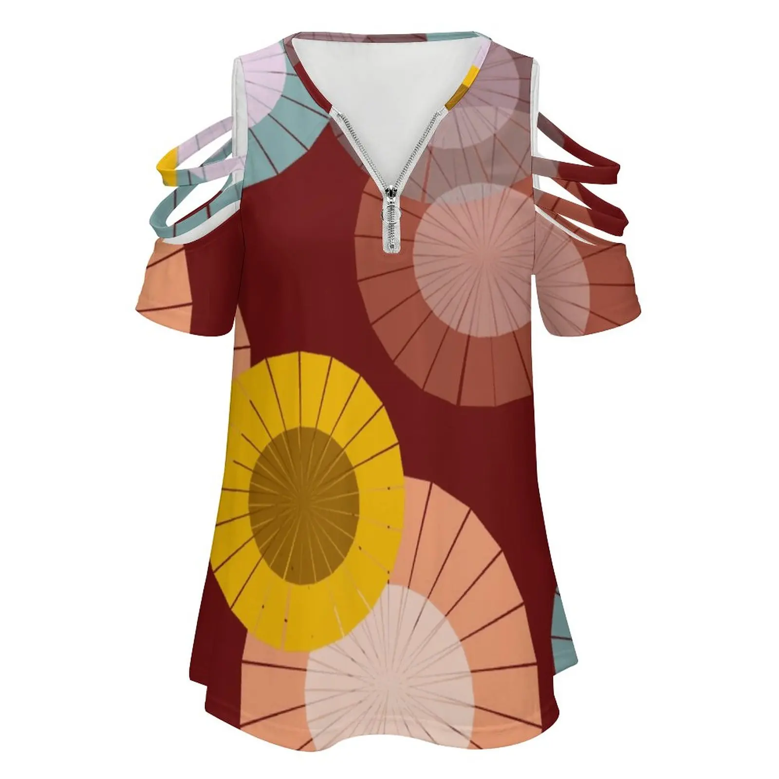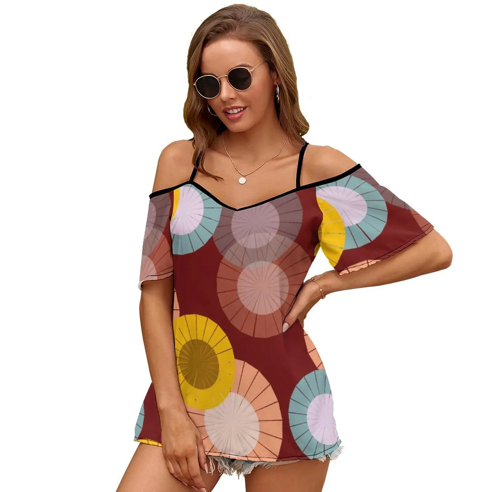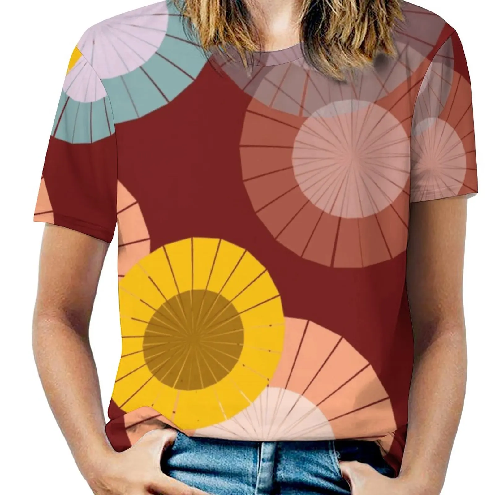 Женская летняя футболка с абстрактным цветочным принтом и V-образным вырезом