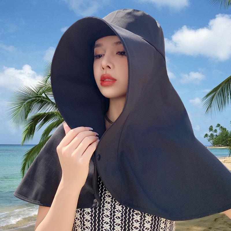 Женская летняя шляпа от солнца с широкими полями, защитой для лица и накидкой для шеи для путешествий чёрный