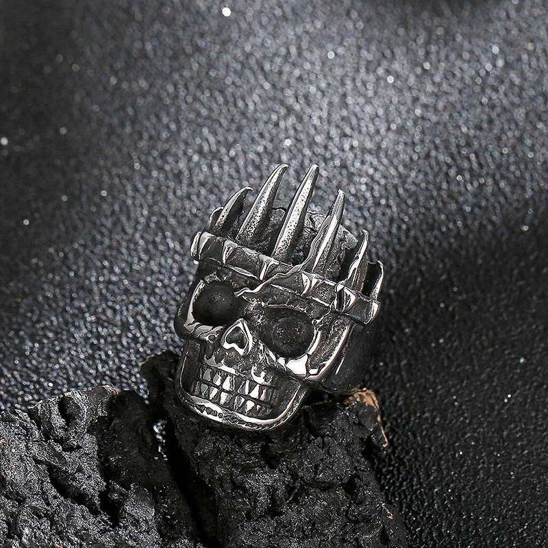 Mens Classic Nobility King Crown Skull and Crown Design 316L Stainless Steel Biker Ring Men Jewelry Gift