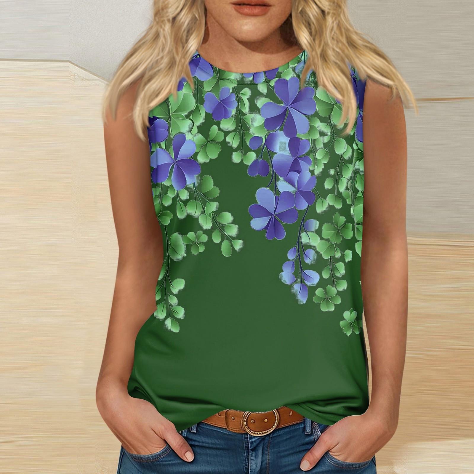 Женская майка для девочек, повседневная майка с цветочным принтом, майки для женщин, свободный крой, топы без рукавов, струящиеся, St. Патрика L армия зеленый