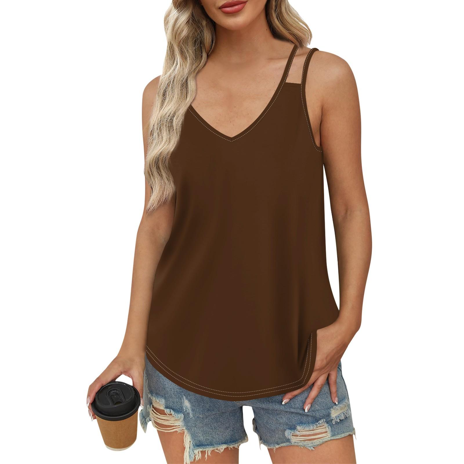 Женская майка, повседневные летние топы с принтом, мода 2024, рубашки без рукавов с v-образным вырезом на тонких бретельках, сексуальные кофточки L коричневый