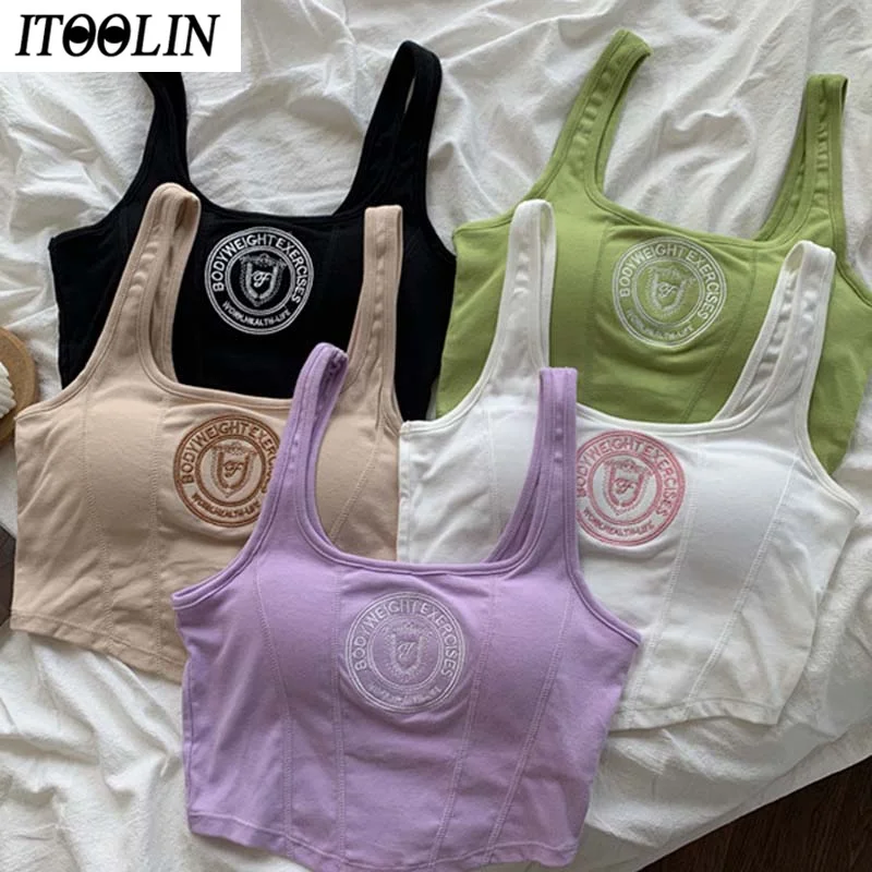 Женская майка ITOOLIN с вышивкой и бюстгальтером на подкладке, укороченный топ Y2K, Трикотажная асимметричная майка с подолом, летняя женская облегающая бюстье