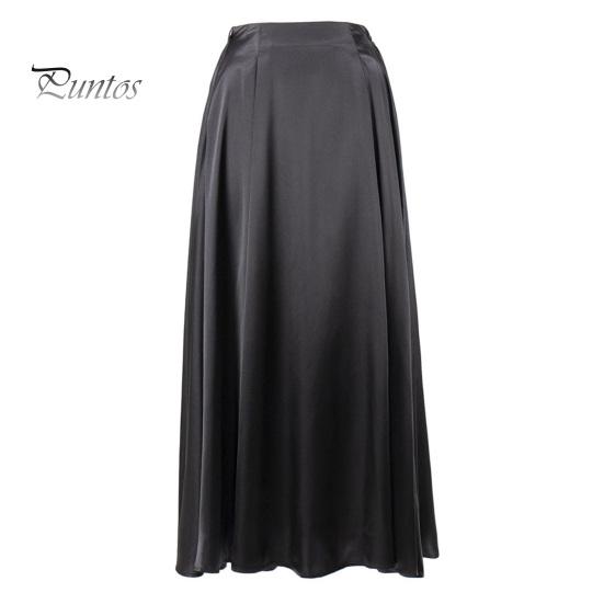 Женская макси-юбка шелковистое пятно, свободная эластичная высокая талия на молнии, трапециевидная форма, большие качели, плиссированные, однотонные, для свиданий, для путешествий, длинная юбка S чёрный