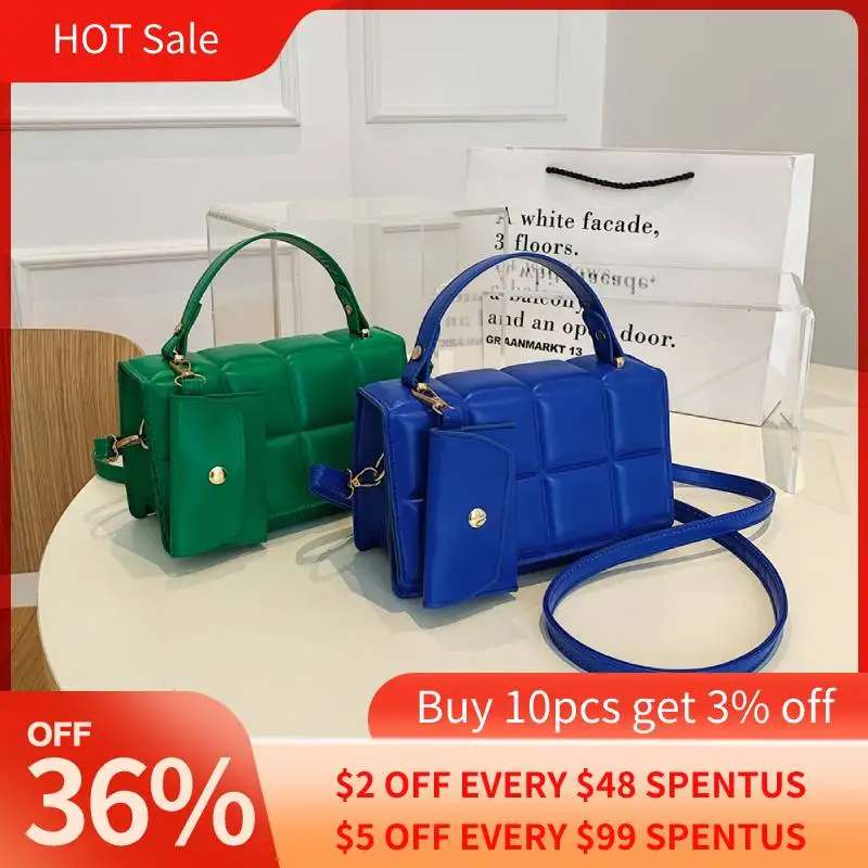 Женская маленькая зеленая сумка, дизайнерская желтая кожаная сумка через плечо с ручкой, Синий кошелек, сумка через плечо для женщин, новинк...