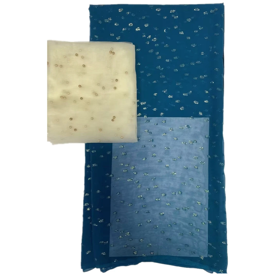 Женская марлевая ткань из 100% натурального шелка и шарф из тюля, платье, 5 + 2 ярда