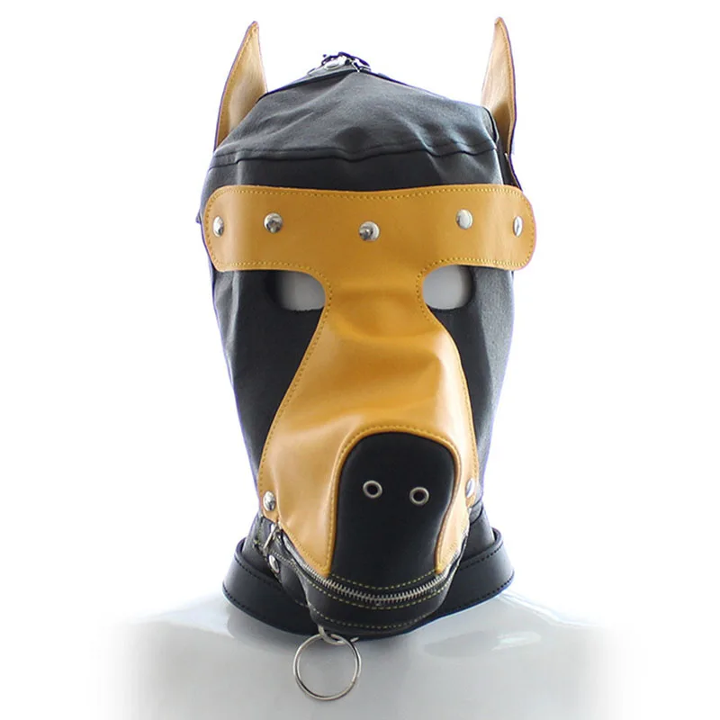 Женская маска для собаки, повязка на глаза, молния на рот, бондаж, БДСМ, фетиш, секс-игрушки для пар