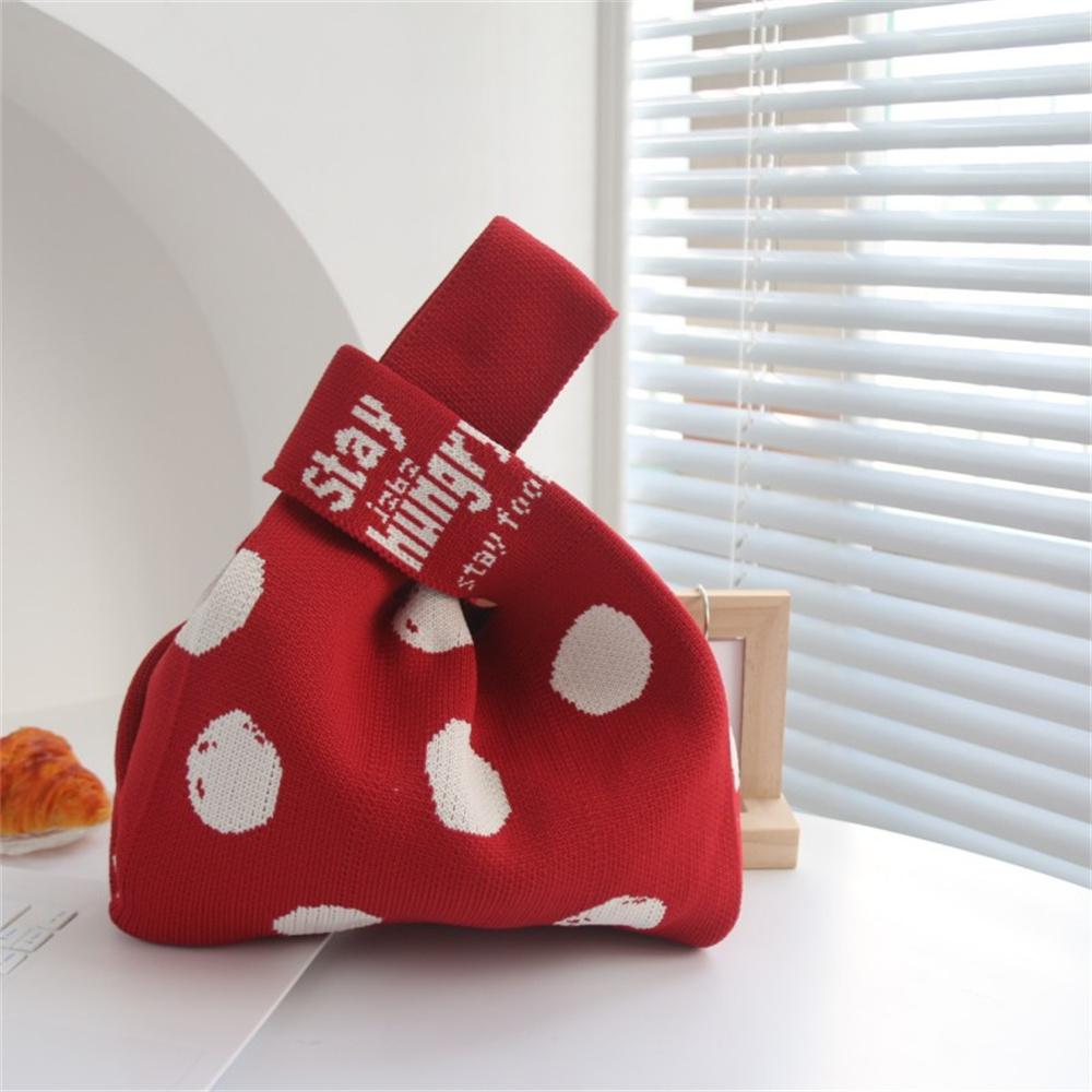 Женская мини-сумка на запястье с узлом, милая японская вязаная большая сумка в горошек, повседневная большая сумка, сумка для девочек, многоразовые сумки для покупок красный
