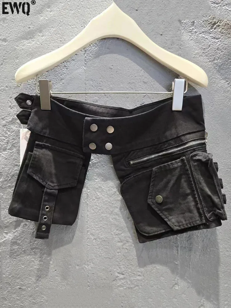 Женская мини-юбка на молнии [EWQ], черная Асимметричная мини-юбка с карманами и высокой талией в уличном стиле, Новинка лета 2024, 16O1010