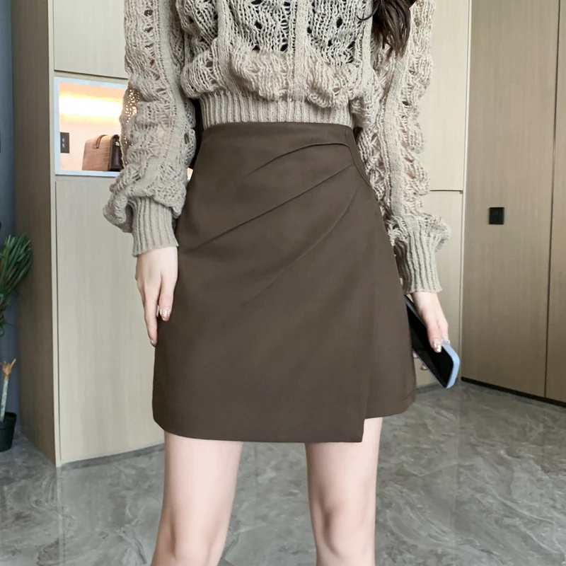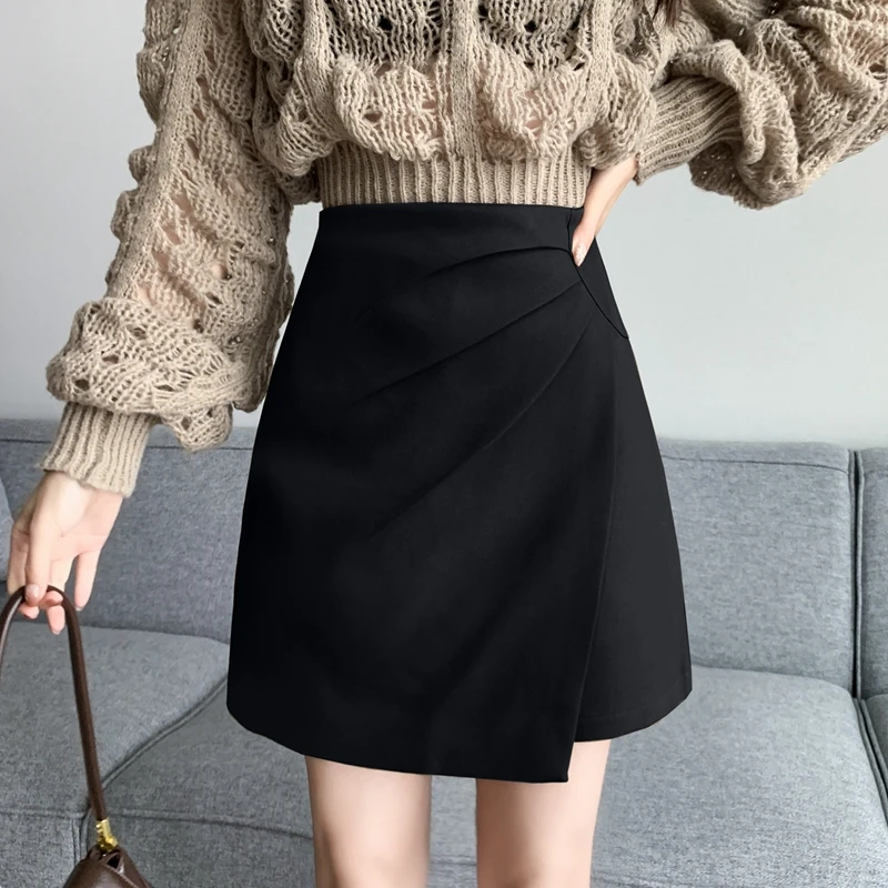 Женская мини-юбка с завышенной талией, черная облегающая юбка в Корейском стиле, Осень-зима 2022