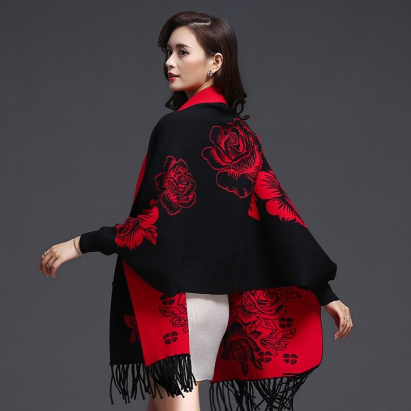 Женская многофункциональная теплая вязаная шаль в стиле ретро с утолщенным темпераментным узором чёрный