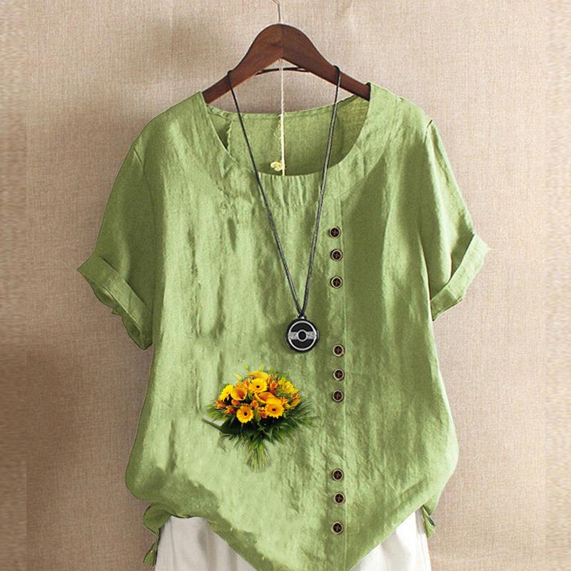 Женская мода Букет цветов Принтованный короткий рукав футболка свободная хлопковая рубашка повседневная свободная летняя блузка топы больших размеров 5XL зелёный
