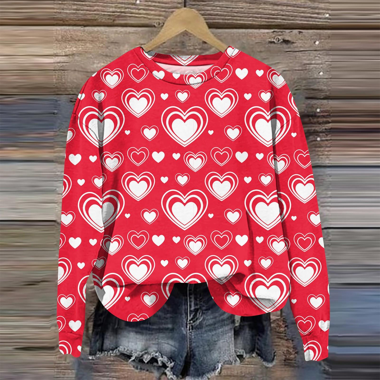 Женская мода День святого Валентина Печатный длинный рукав свободный круглый вырез толстовка Топ осень XL арбуз красный