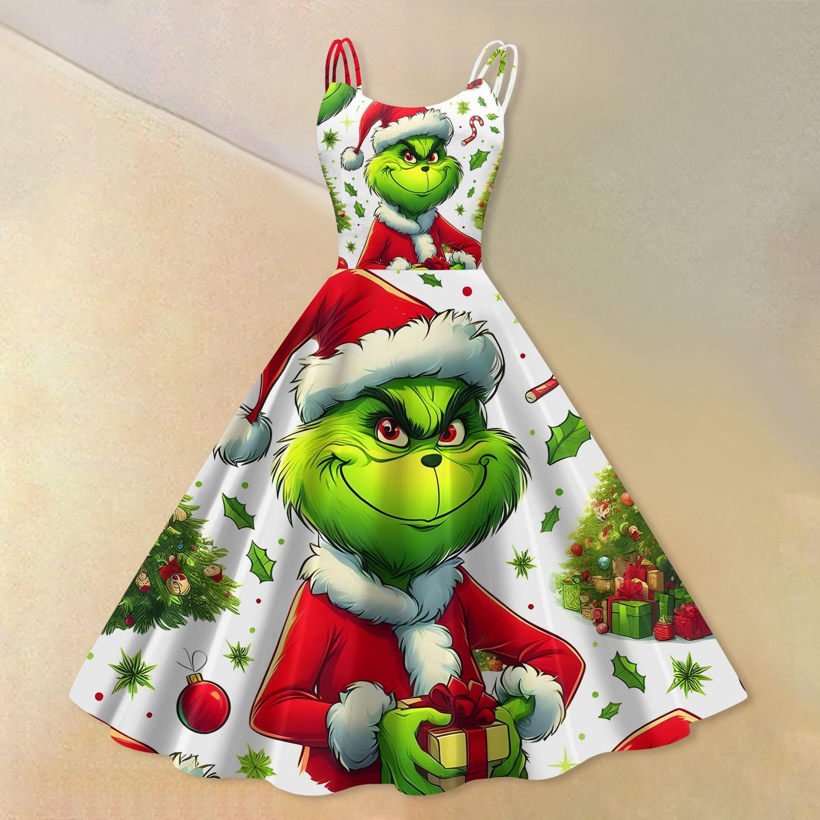 Женская мода Рождество Печатный Сексуальный Без Бретелек Панк Повседневный Винтаж Платья M