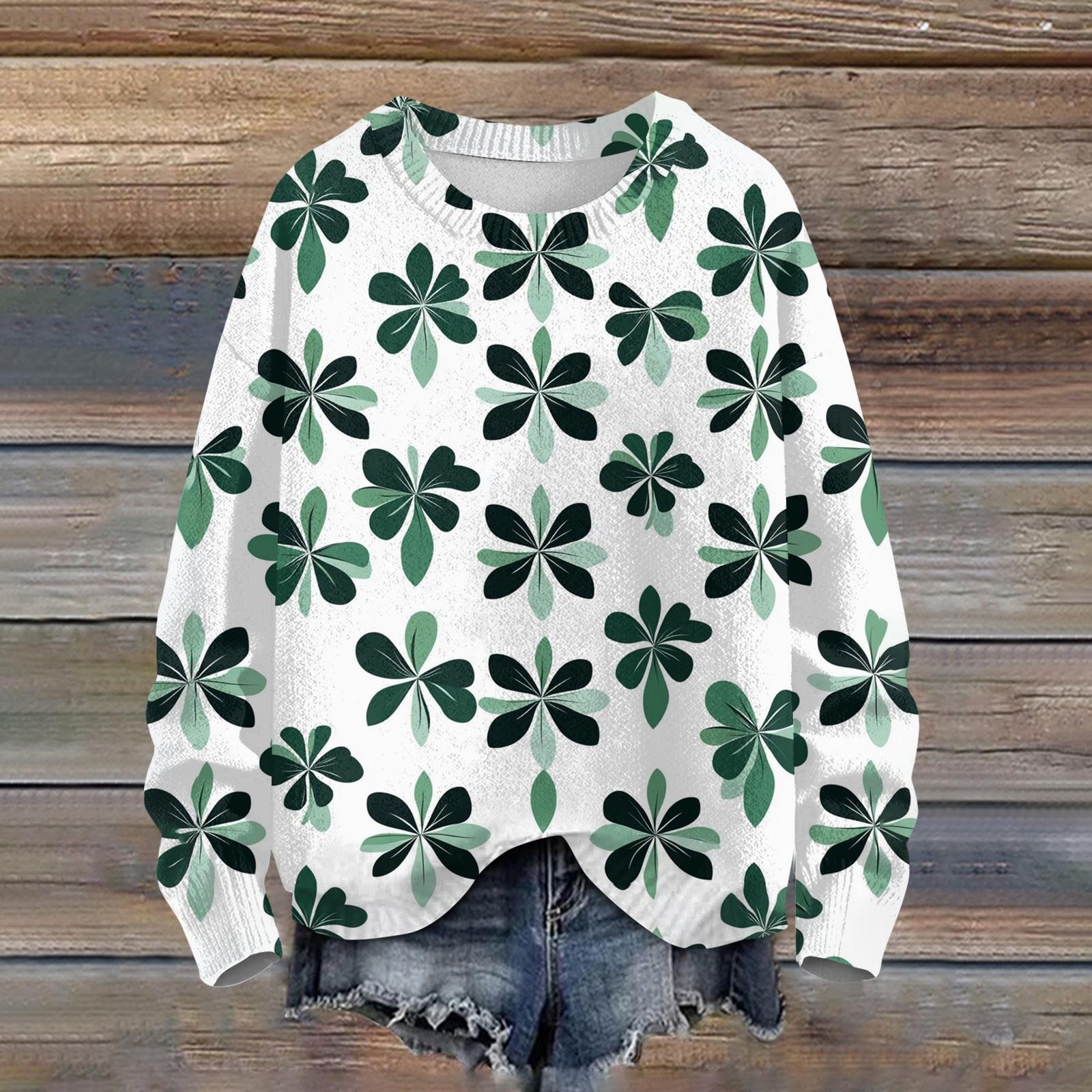 Женская мода вскользь с длинным рукавом St. Вязаный топ с круглым вырезом и принтом ко Дню Святого Патрика XL жёлтый