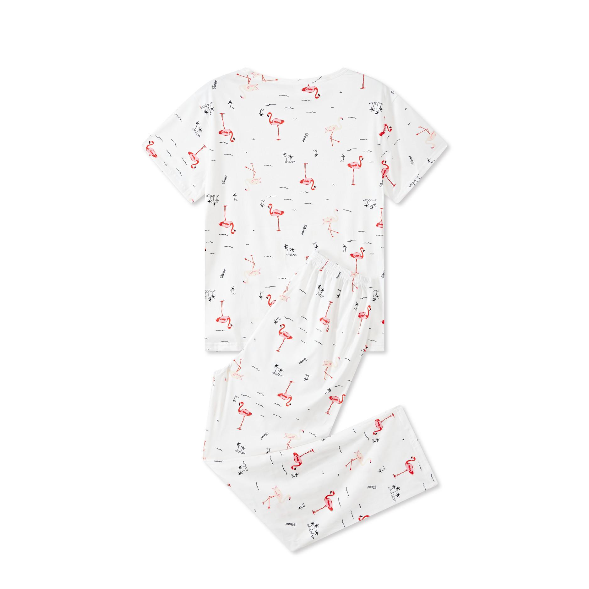 Женская мода в европейском и американском стиле, весенняя домашняя одежда, комплект из 2 предметов, короткий рукав, длинные брюки, пижама, домашняя одежда с цветочным принтом XL красный