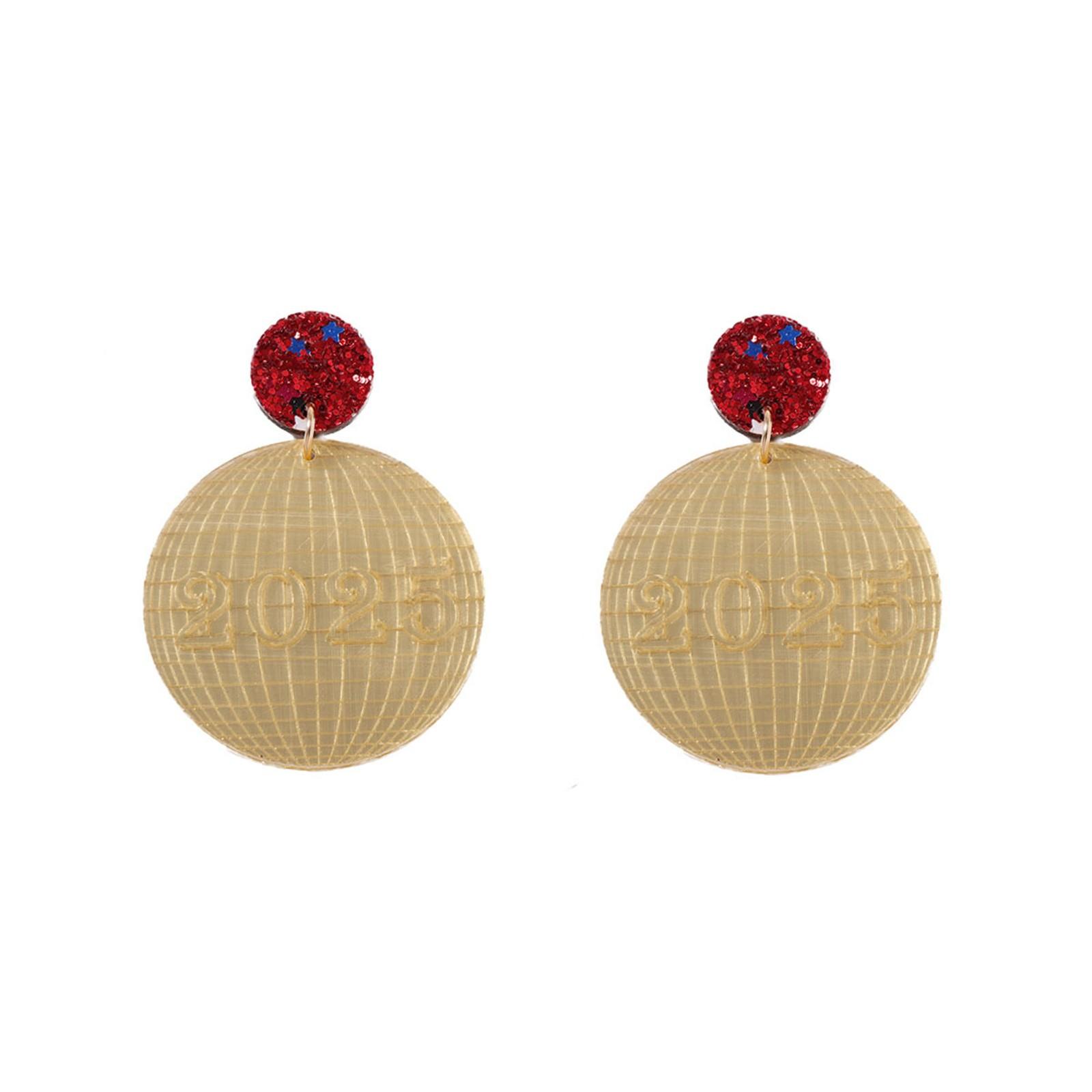 Женская мода геометрические круглые цифры 2025 Новогодние серьги-крючки красный
