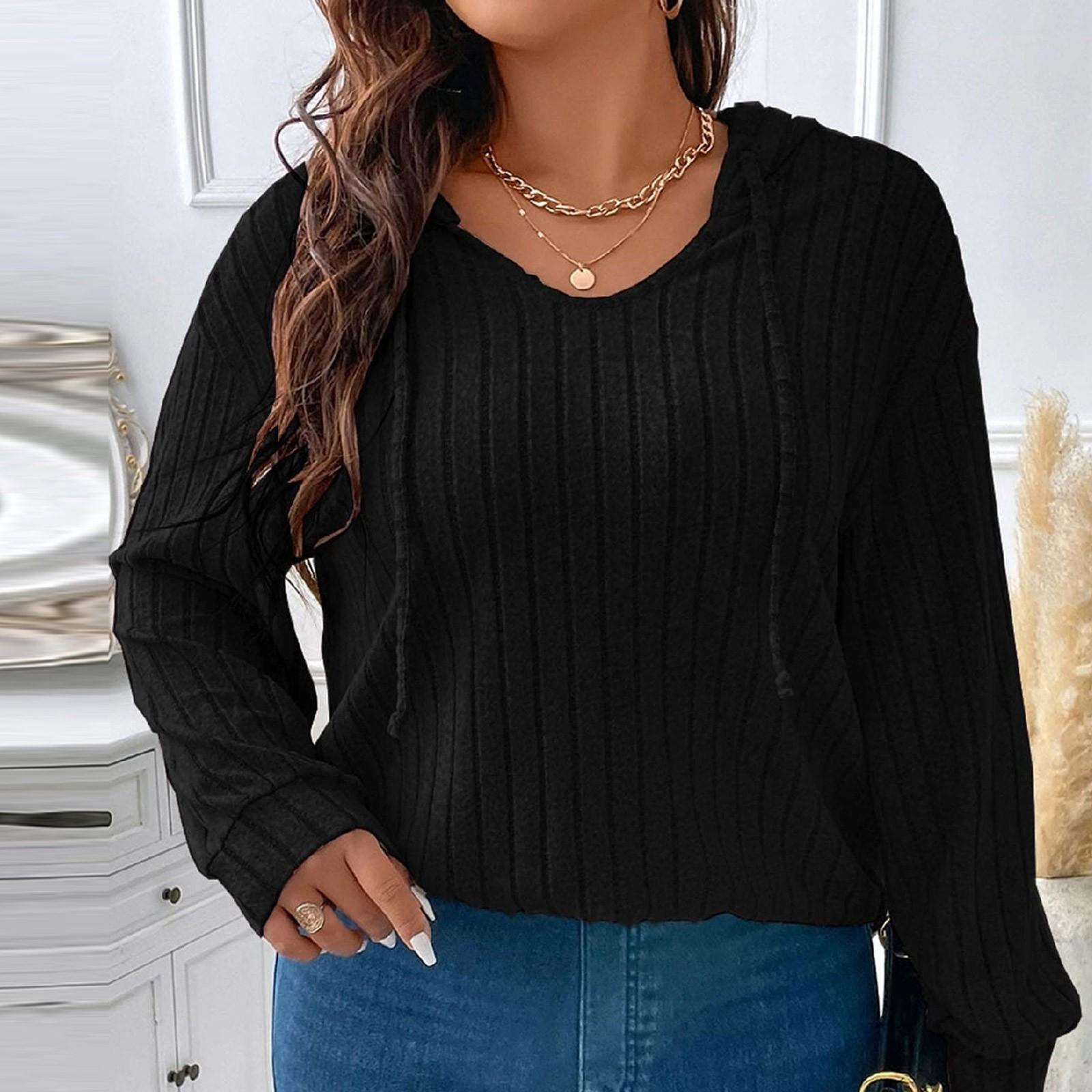 Женская мода однотонная футболка с V-образным вырезом и длинными рукавами, повседневная футболка, зимняя XXL чёрный