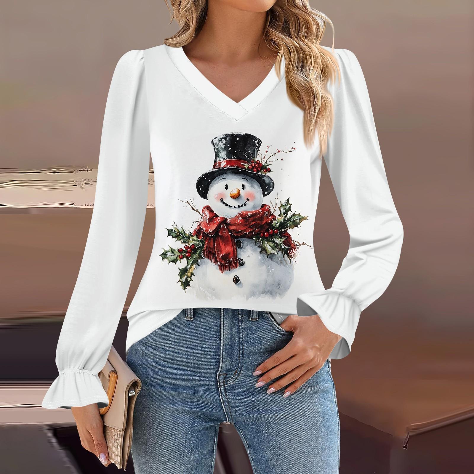 Женская мода повседневная блузка с длинным рукавом и принтом, V-образным вырезом, рукавом-трубой XL белый
