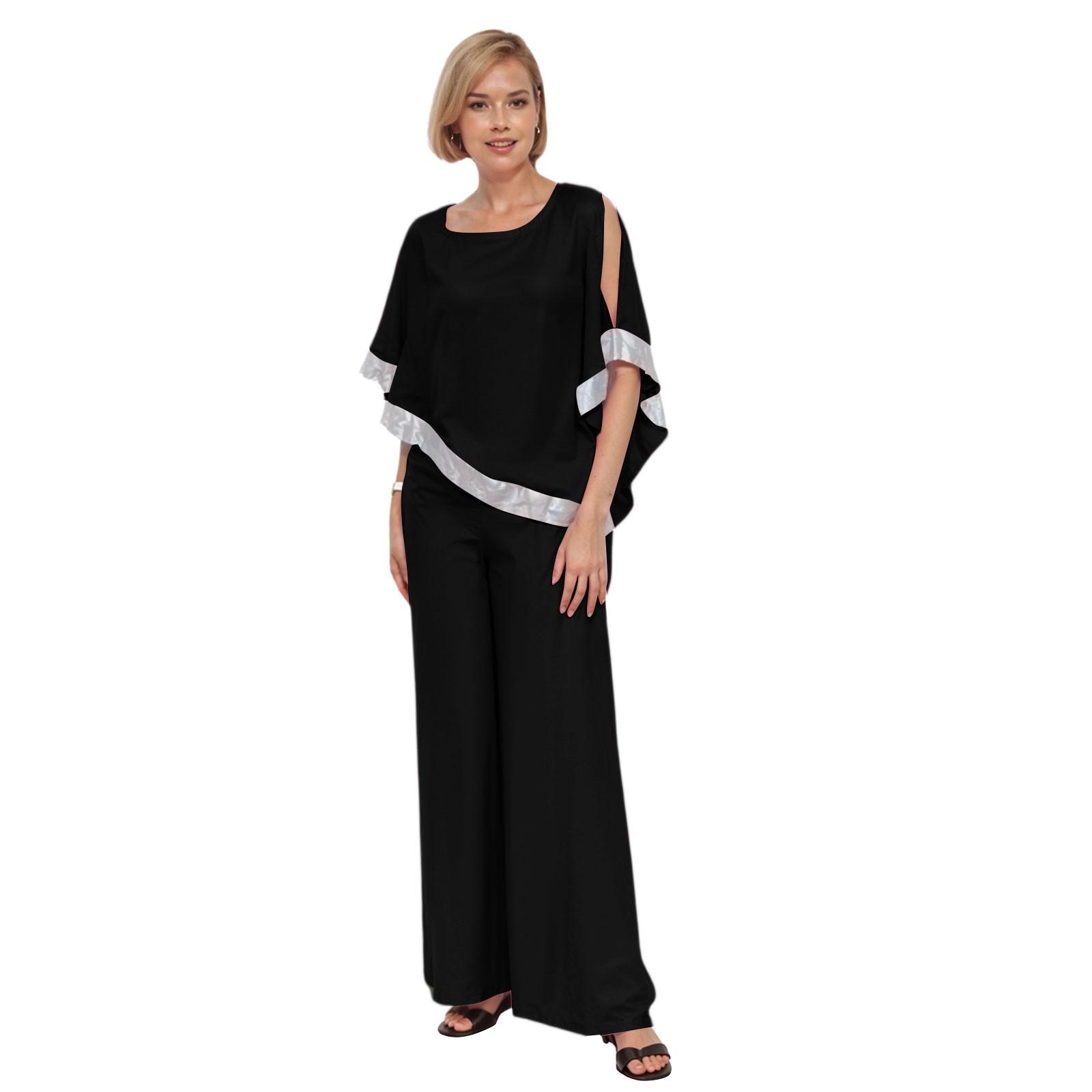 Женская мода повседневная весна-лето с круглым вырезом, расшитая блестками, цветные блоки, летучая мышь, рубашка, топ, широкие брюки, комплект XXL чёрный