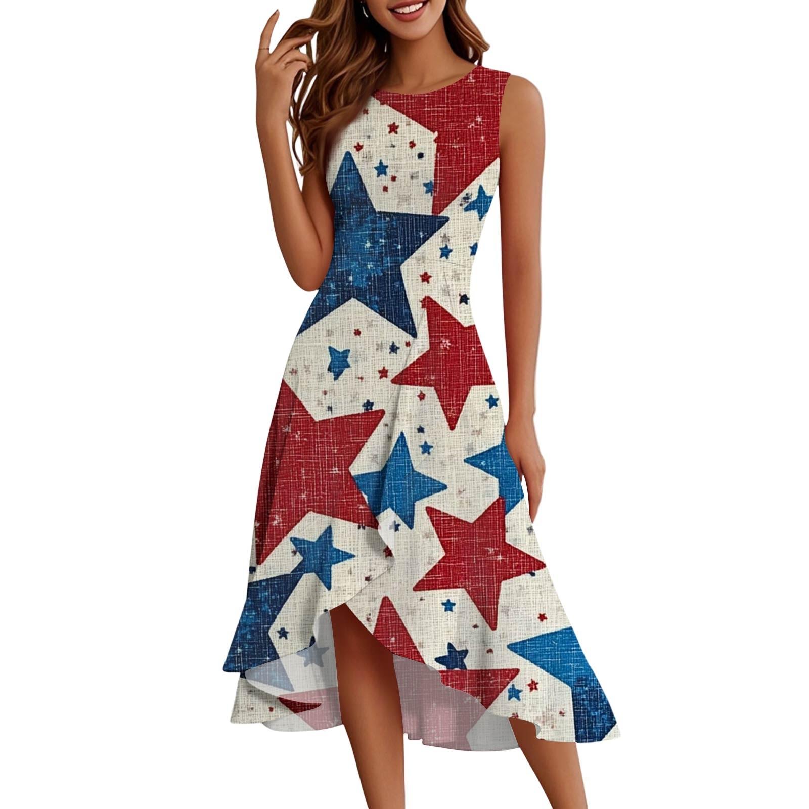 Женская мода повседневная молния без рукавов круглый вырез День независимости элегантный темперамент оборки платья платья M