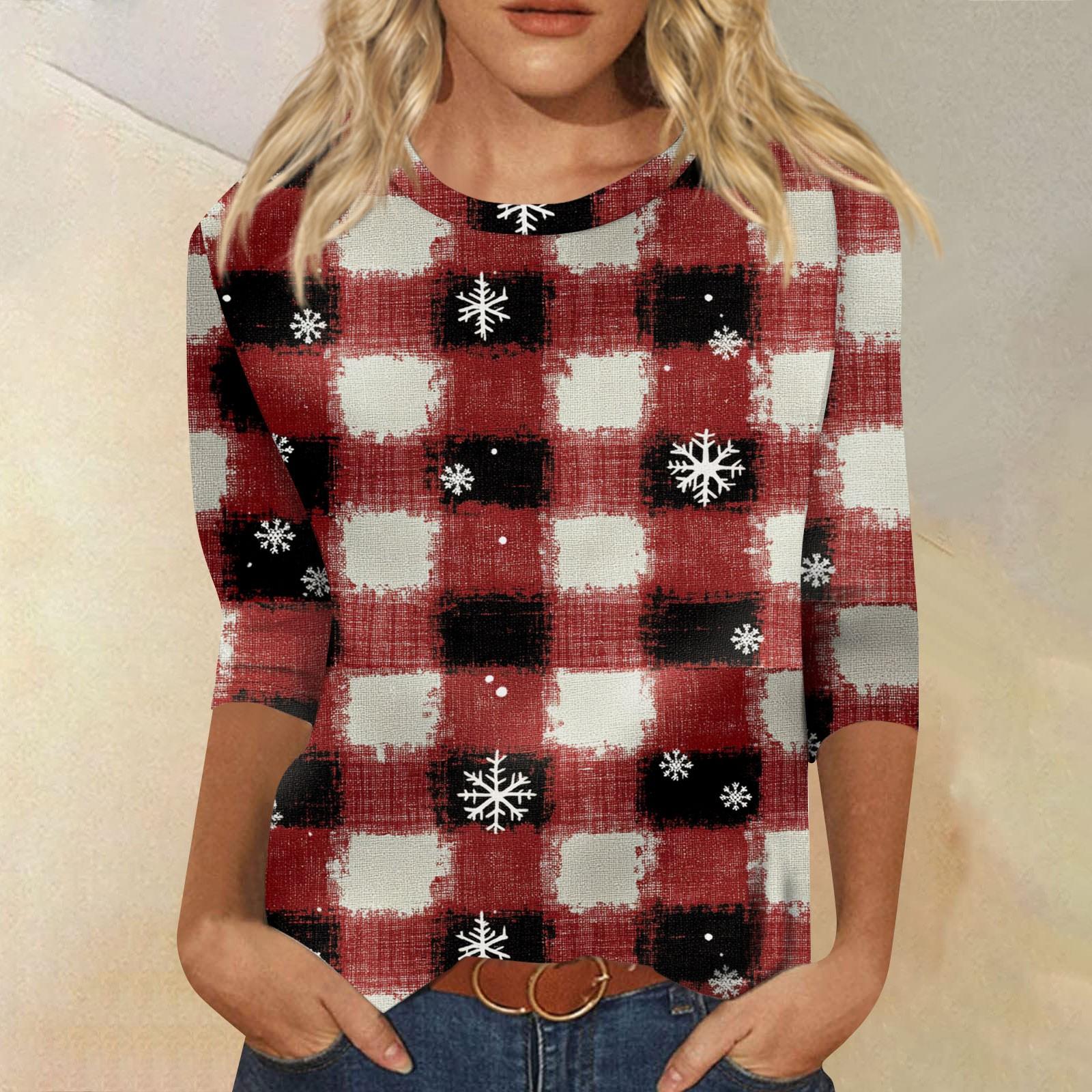 Женская мода повседневная рубашка с круглым вырезом и рождественским принтом, семь рукавов XXXL розовый
