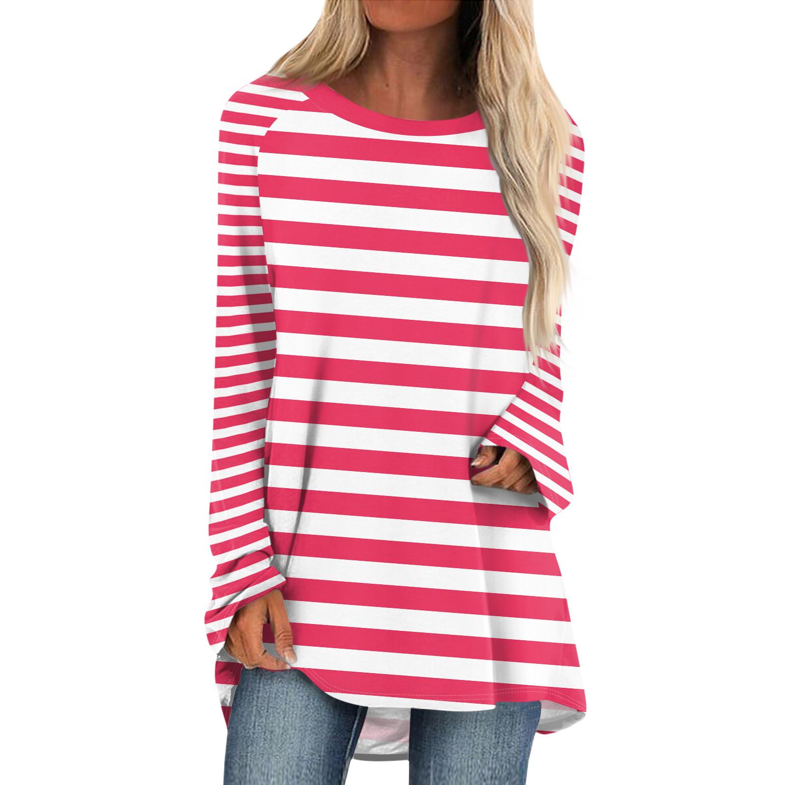 Женская мода повседневная спущенная линия плеча с длинным рукавом миди полосатый принт топ XL белый